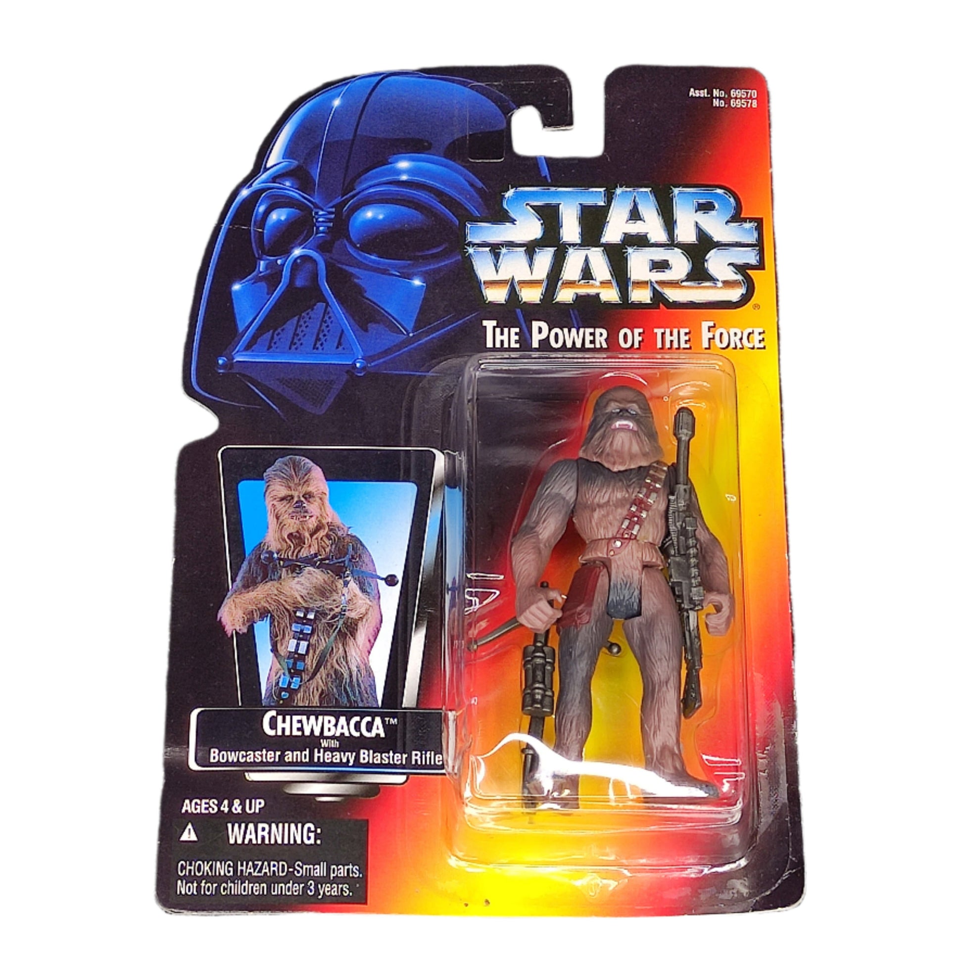 - This action figure is from the Power of the Force range. It features Chewbacca as seen in the original trilogy and comes complete with his signature bowcaster accessory and Heavy Blaster Rifle. Standing approximately 3.75 inches tall, it showcases the classic muscular sculpt of the early POTF figures. A must-have addition for Star Wars fans and collectors of vintage action figures.