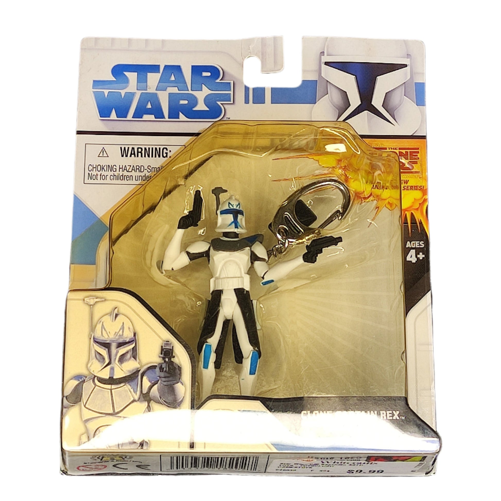 - This Clone Captain Rex keychain is from the Basic Fun Star Wars: The Clone Wars Series 1 collection. This officially licensed keychain features a detailed, fixed-pose PVC mini-figure of Captain Rex, attached to a sturdy metal keyring, perfect for fans and collectors alike. The figure captures the iconic look of Captain Rex from the animated series, making it a great collectible or practical accessory for keys and bags. Measuring about 3.5 inches tall, it is lightweight and durable, ideal for everyday use or display. A must-have for any Star Wars enthusiast or keychain collector.
